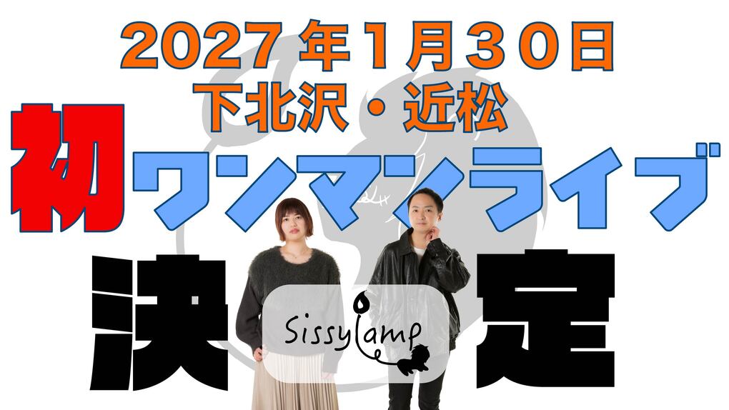 2027.1.30(土)下北沢・近松 にて、 結成8周年を迎えるこの月に、Sissylamp初のワンマンライブの開催が決定しました!! 詳細などは随時更新して参ります!続報をお待ちください!!